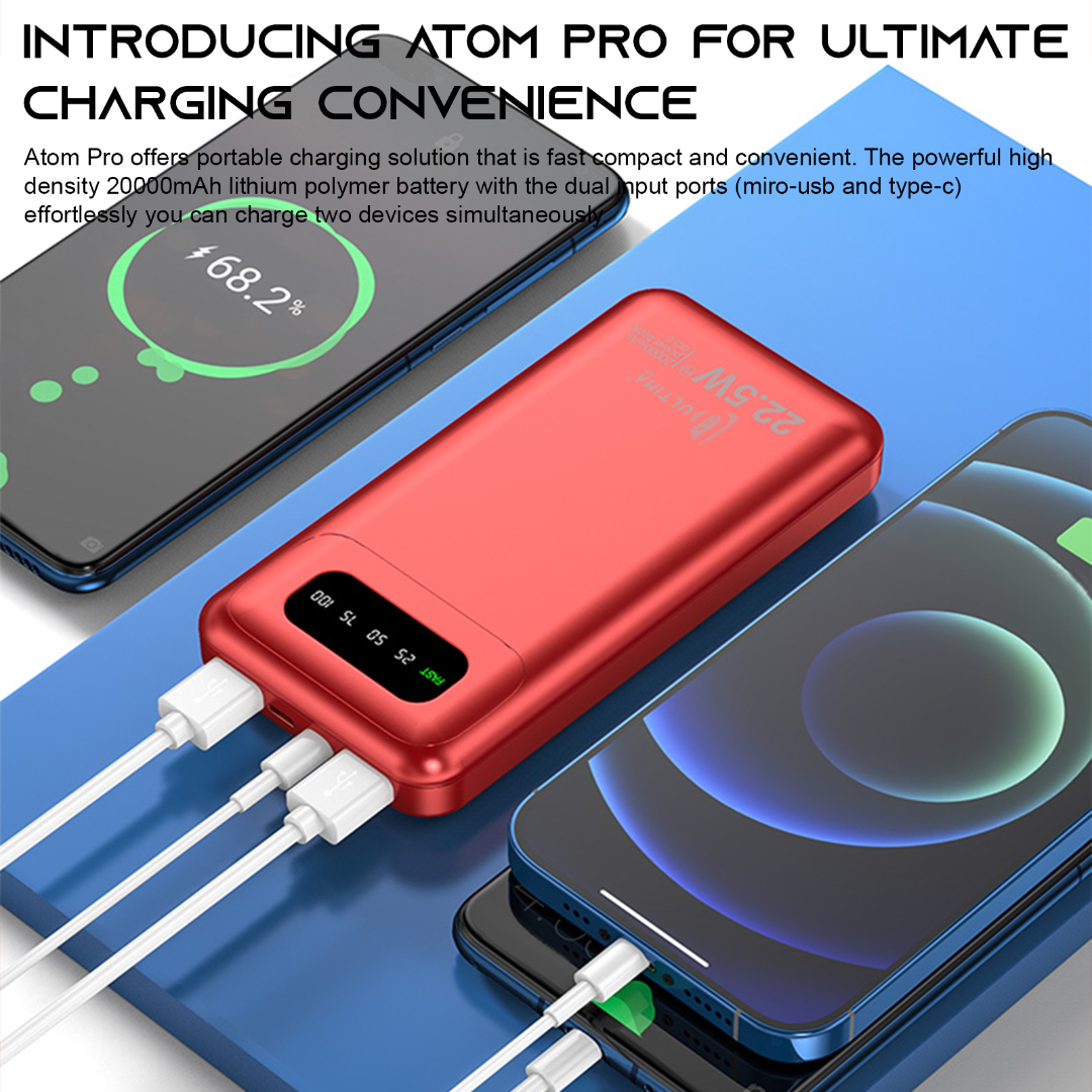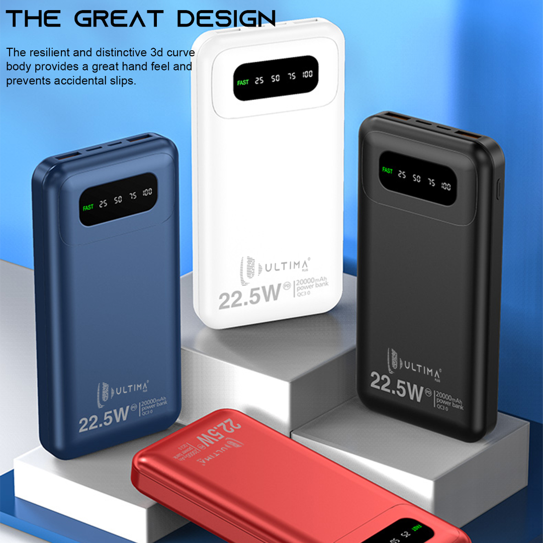 Solid 20000mAh Power Bank: The large-capacity Li-Polymer battery charger allows you to charge your smart electronic devices multiple times.